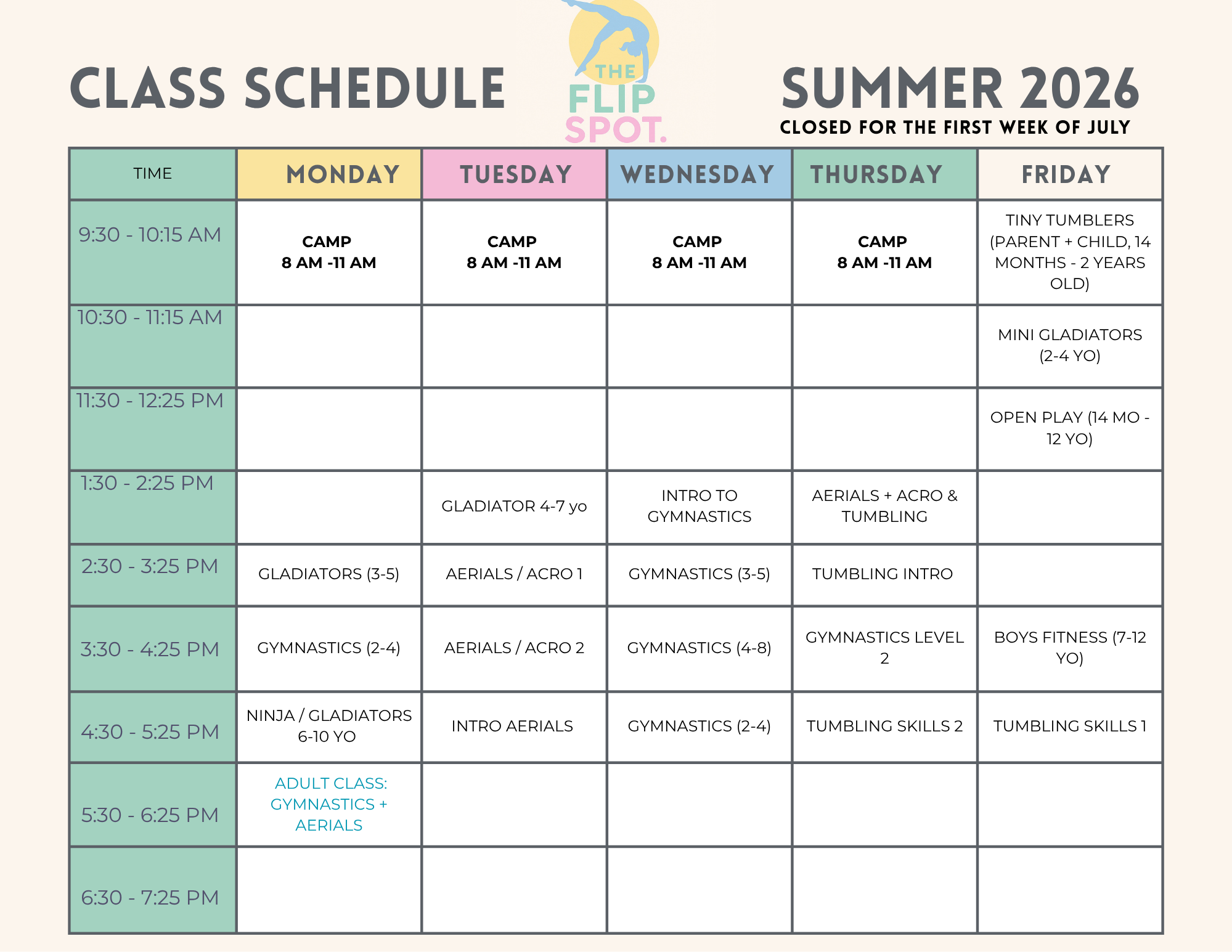 Are you new to The Flip Spot? Visit our New Students page.